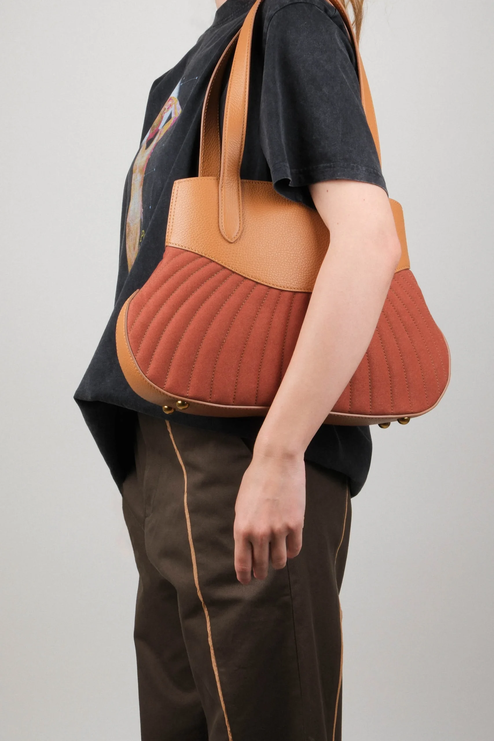 Made with the perfect blend of supple Tuscan leather and deadstock microfiber suede, it conveys effortlessly the essence of material intelligence attached to it. The warmth of leather feels familiar to the hands, yet it remains refined by the structure. The incorporation of the microfiber suede provides a soft surface that invites touch. The qualities that this bag holds is not accidental but they are most attached to the ethos of Absent Finding where a belief lies in the fact that materiality should resonate most with the memory and movement which calls out the wearer to build a deeper attachment with the object that they are carrying.